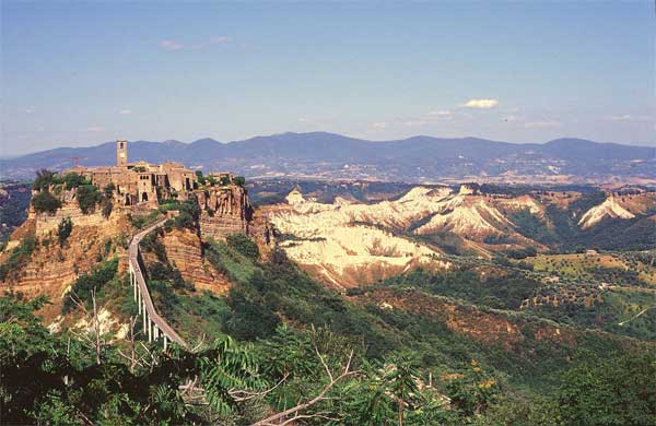 Dal terrazzo panoramico che prelude al passaggio pedonale per Civita, gettiamo un primo sguardo sul "paese che muore".