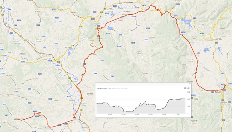 Tappa domenicale in cui rimango paradossalmente vittima della prenotazione, anziché esserne tutelato. Alle 17, a Narni, ero soltanto a metà strada, e con l'aggravante del solito temporale incombente. Mi sono mosso tardi da Fabrica, alle 10 passate, ma il borgo meritava. Così come Corchiano, a pochi km di distanza. Sempre tanti gatti. Non ricordo di aver mai percorso prima il tratto di Flaminia fra Civita Castellana e Narni. È una strada molto ondulata e offre molte belle viste sulle campagne. Otricoli l'ammiro da lontano, mentre a Narni non posso esimermi dall'entrarci (anche perché la strada ci passa in mezzo). Da Narni si scende precipitosamente al livello di Terni, che si aggira per dirigersi verso Rieti. Peccato che la segnaletica sia imbarazzante, e io prenda la strada sbagliata. Per recuperare quella giusta mi tocca affrontare una rampa da garage che mi rimette sulla vecchia statale. Al termine del tratto in salita c'è il bivio fra Piediluco e la strada in piano. Scelgo la seconda. Nel finale ci sono due gallerie, la prima lunga oltre 2 km, ma sono ben illuminate. È la luce del sole che si è molto affievolita, con la complicità di una fitta coltre di nubi nere. Arrivo alle 20:55, giusto in tempo per vedere la finale dei mondiali di calcio. Niente cena, però.