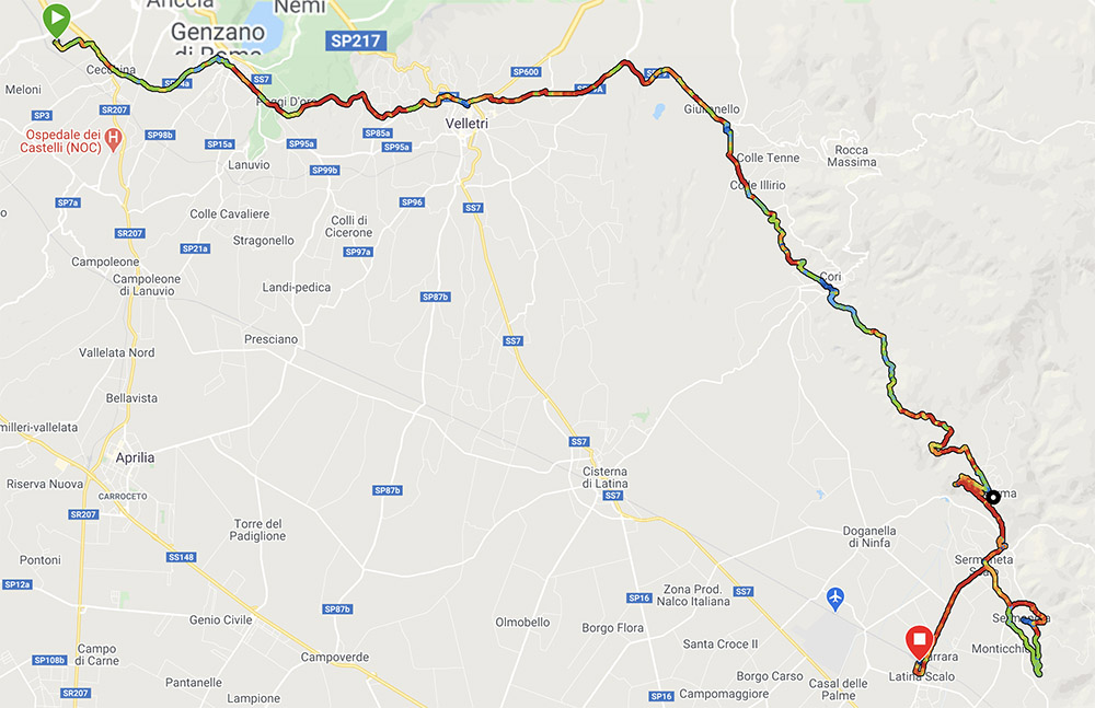 NOTE: ancora una giornata calda, ma decisamente più soddisfacente, grazie sia al fascino dei borghi storici che alla bellezza semplice e variegata del territorio che li connette. In particolare Cori sembra una livella triangolare, sulla sommità della quale si entra, scartando un po' su un lato, in una via coperta costellata di vecchi portoni. Il mio arrivo è posto a Latina Scalo, che è un sobborgo del capoluogo a pochi chilometri dal capoluogo, come pure la partenza era avvenuta dall'estrema periferia di Ariccia (il che probabilmente mi ha distratto dal proposito di assaggiare la proverbiale porchetta locale).